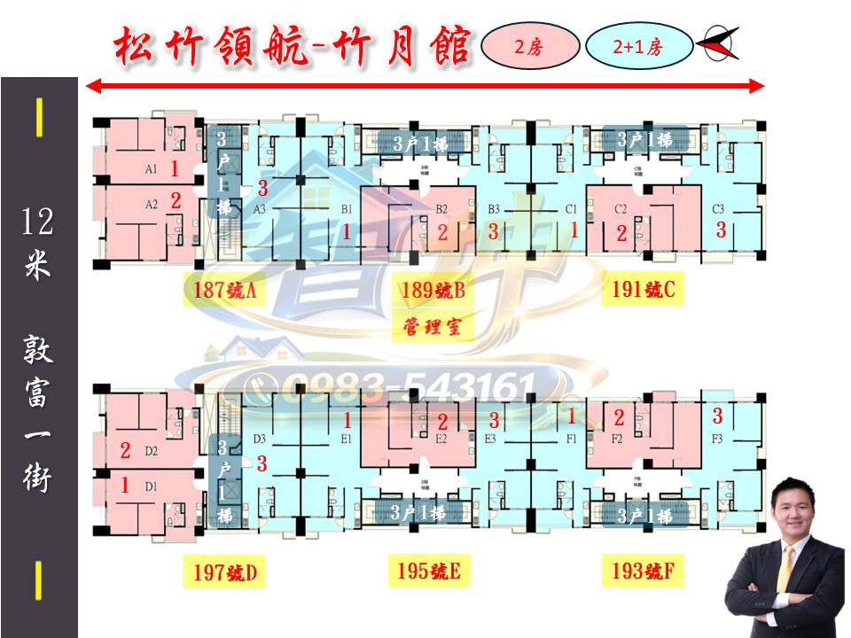 電梯戶數:A~c棟1梯3戶 d~f棟1梯3戶