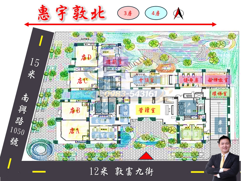 公 設:接待大廳、空中花園、閱覽室、視聽室、健身房、親子遊戲區、信箱區、曬被區