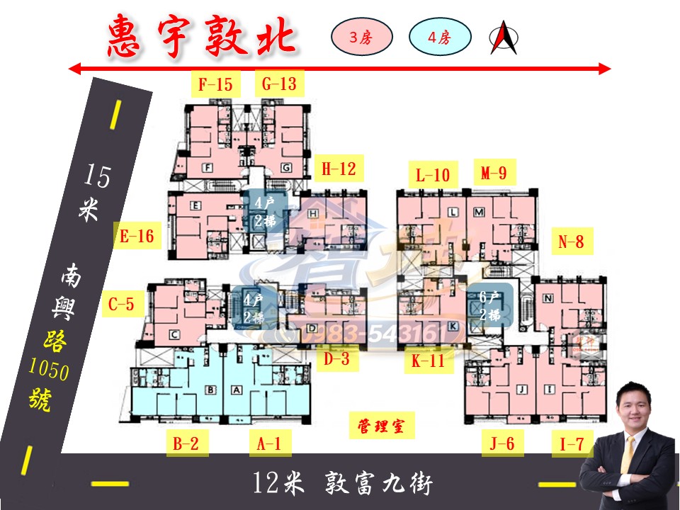 電梯戶數:A~D棟 2梯4戶 E~H棟2梯4 I~N棟 2梯6戶