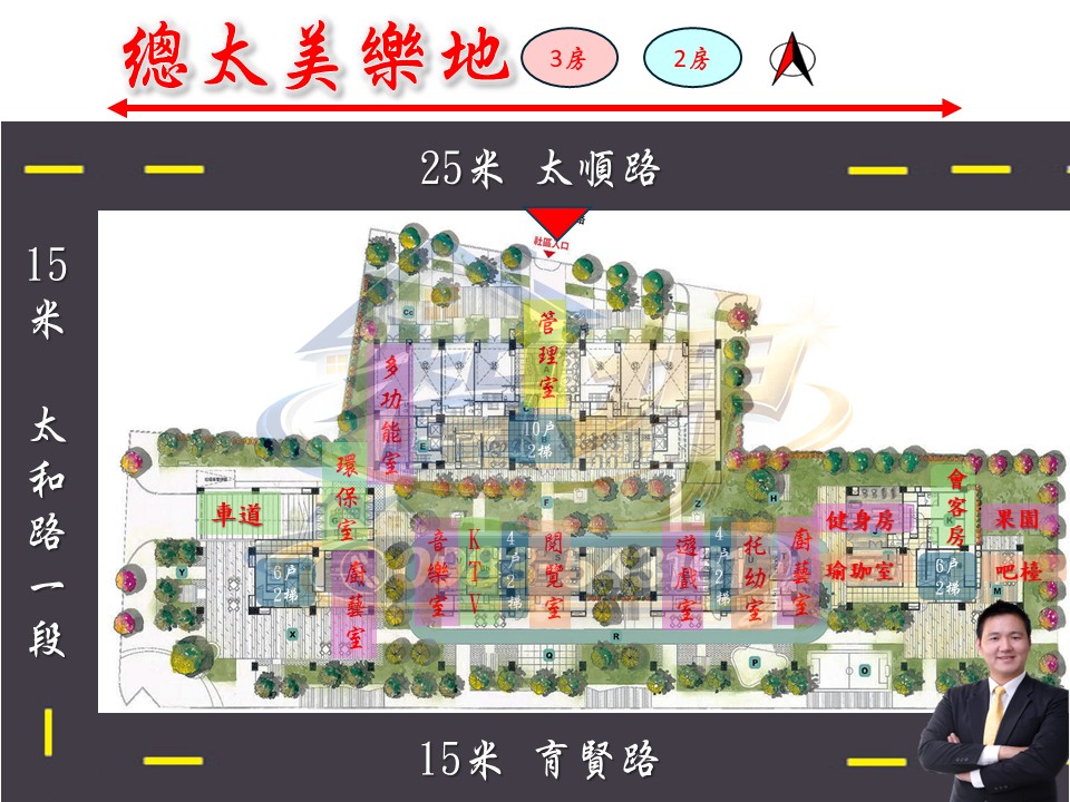 路 口:20m 太順路 vs 15m 太和路一段 vs 15m 育賢路(三面臨路)