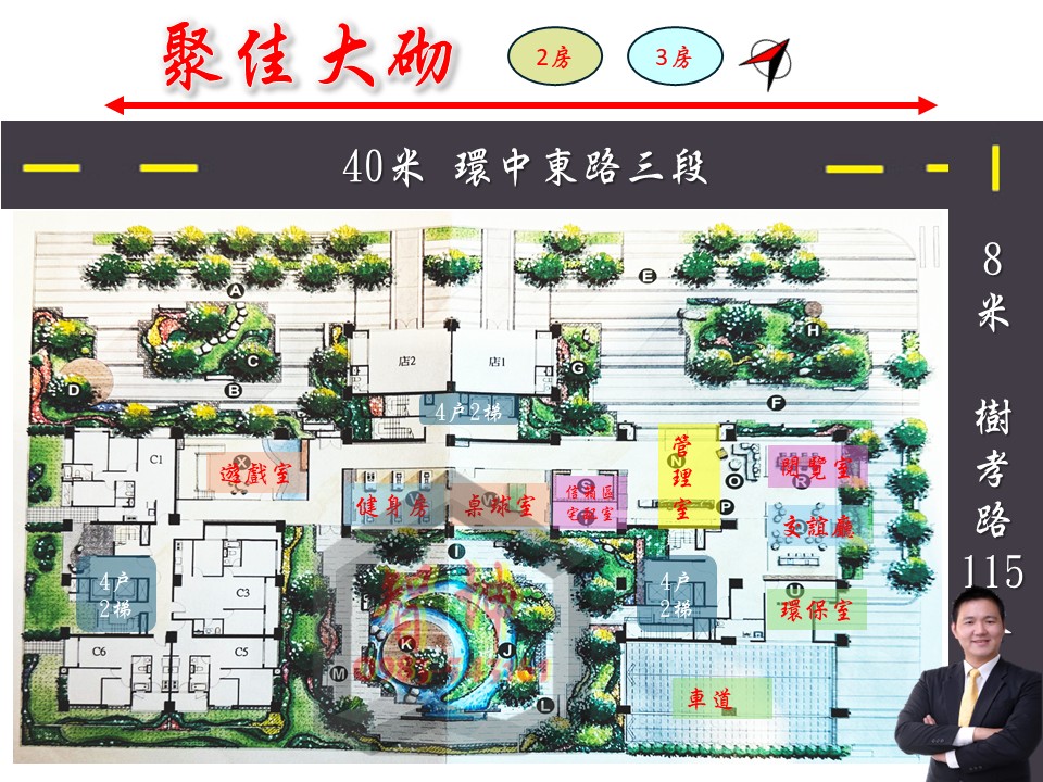 路 口:40m 環中東路四段 vs 8m 樹孝路115巷(雙面臨路)