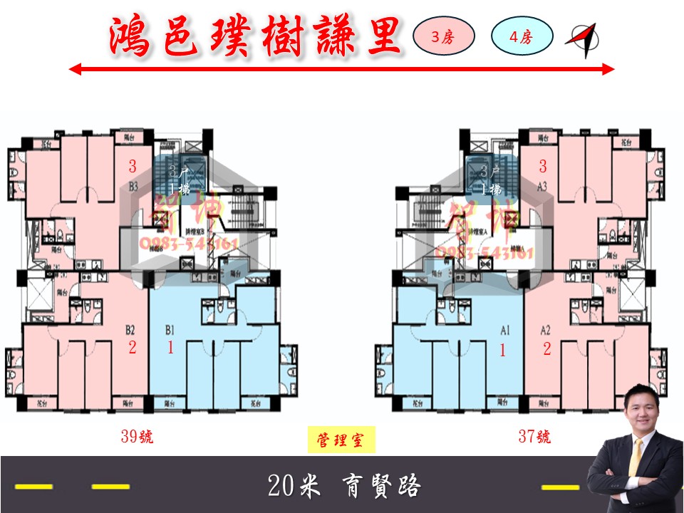 電梯戶數:A棟 3戶1梯 B棟 3戶1梯
