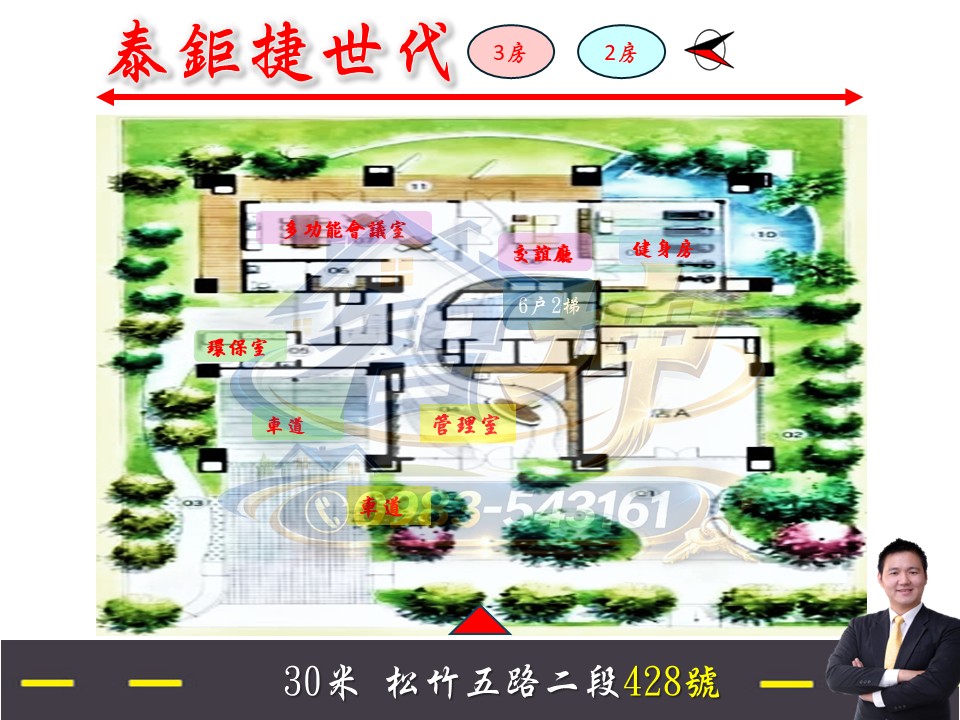 公 設:接待大廳、空中花園、交誼廳、會議室、閱覽室、健身房、廚藝教室、曬被區