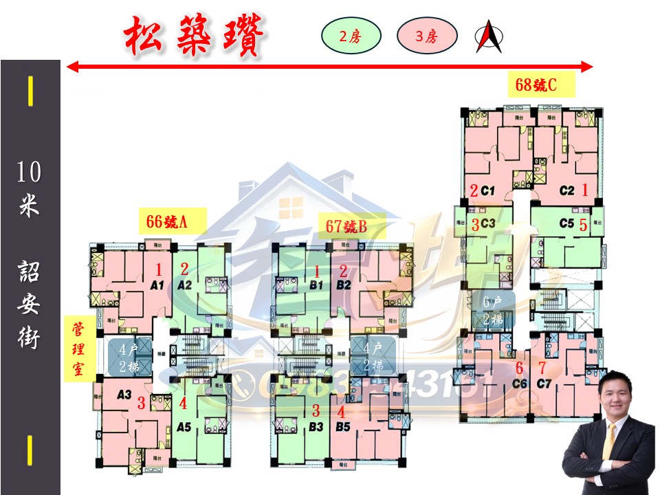 電梯戶數:A棟 2梯4戶 b棟 2梯4戶 c棟 2梯6戶