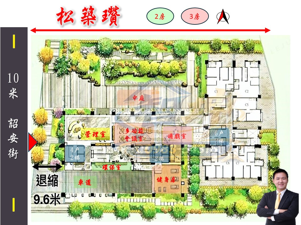 公 設:接待大廳、空中花園、閱覽室、視聽室、健身房、親子遊戲區、信箱區、曬被區