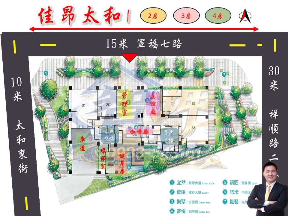 公 設:接待大廳、交誼廳、閱覽室、健身房、信箱區