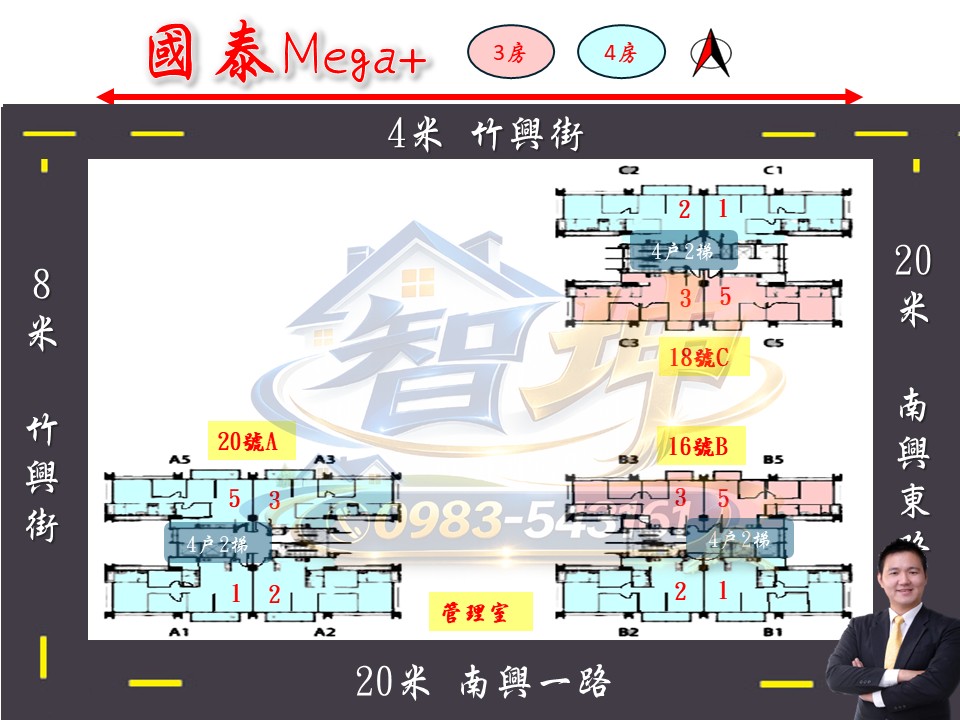 電梯戶數:A棟 2梯4戶 b棟 2梯4戶 c棟 2梯4戶