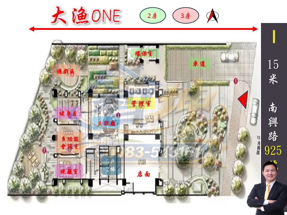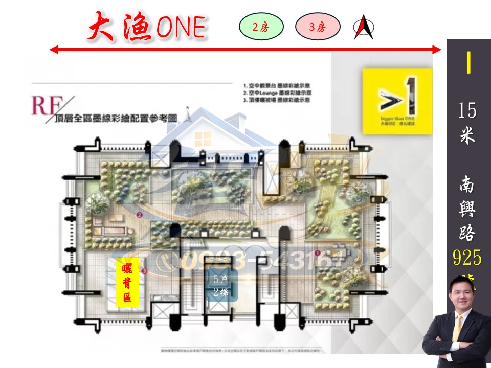公 設:接待大廳、中庭花園、空中花園、閱覽室、視聽室、健身房、信箱區、曬被區