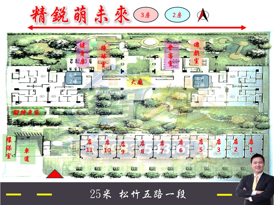 公 設:接待大廳、閱覽室、視聽室、健身房、親子遊戲區、信箱區、曬被區